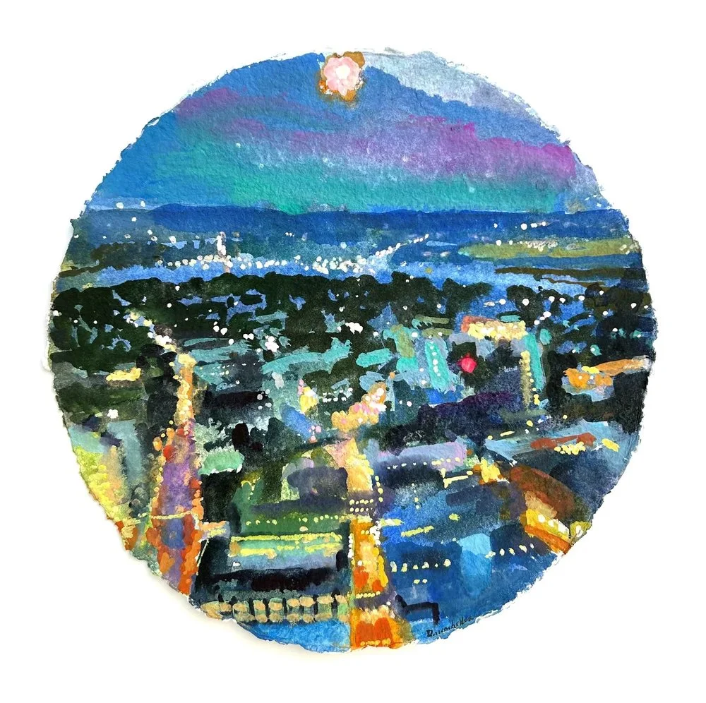 Grant Drumheller is more interested in light and gesture than narrative, he takes liberties with his approach to figures constructing them in a light infused composition seen from a bird’s eye view. He began making still life paintings of groups of toy animals lying on the floor in his studio, like big migrations. Prior to that, he spent some time in Rome filming from the 4th floor window of his hotel room all the activity in front of the Pantheon.The idea of painting that view also came from painting some of the large ruins in Rome with the inevitably small figures next to them.