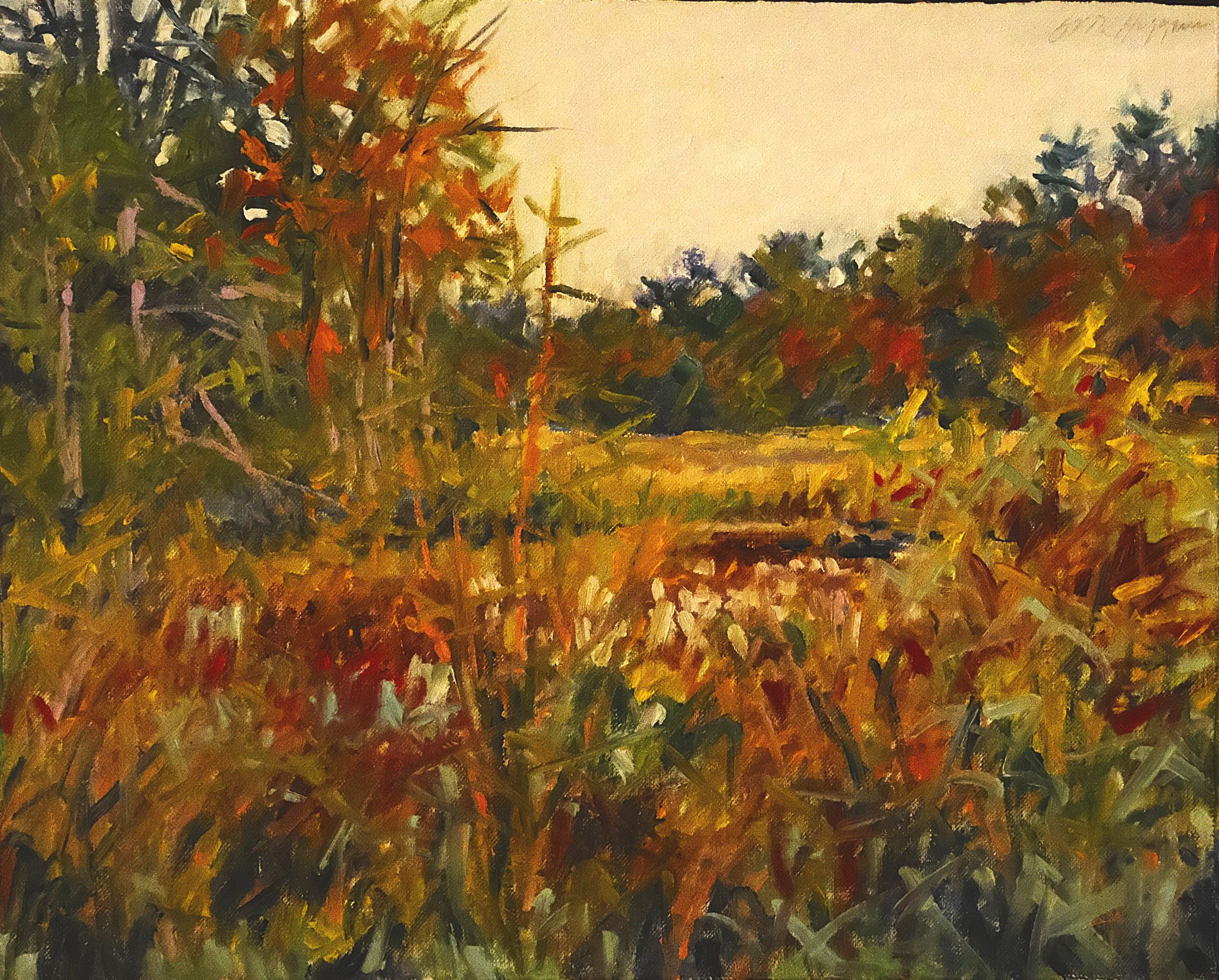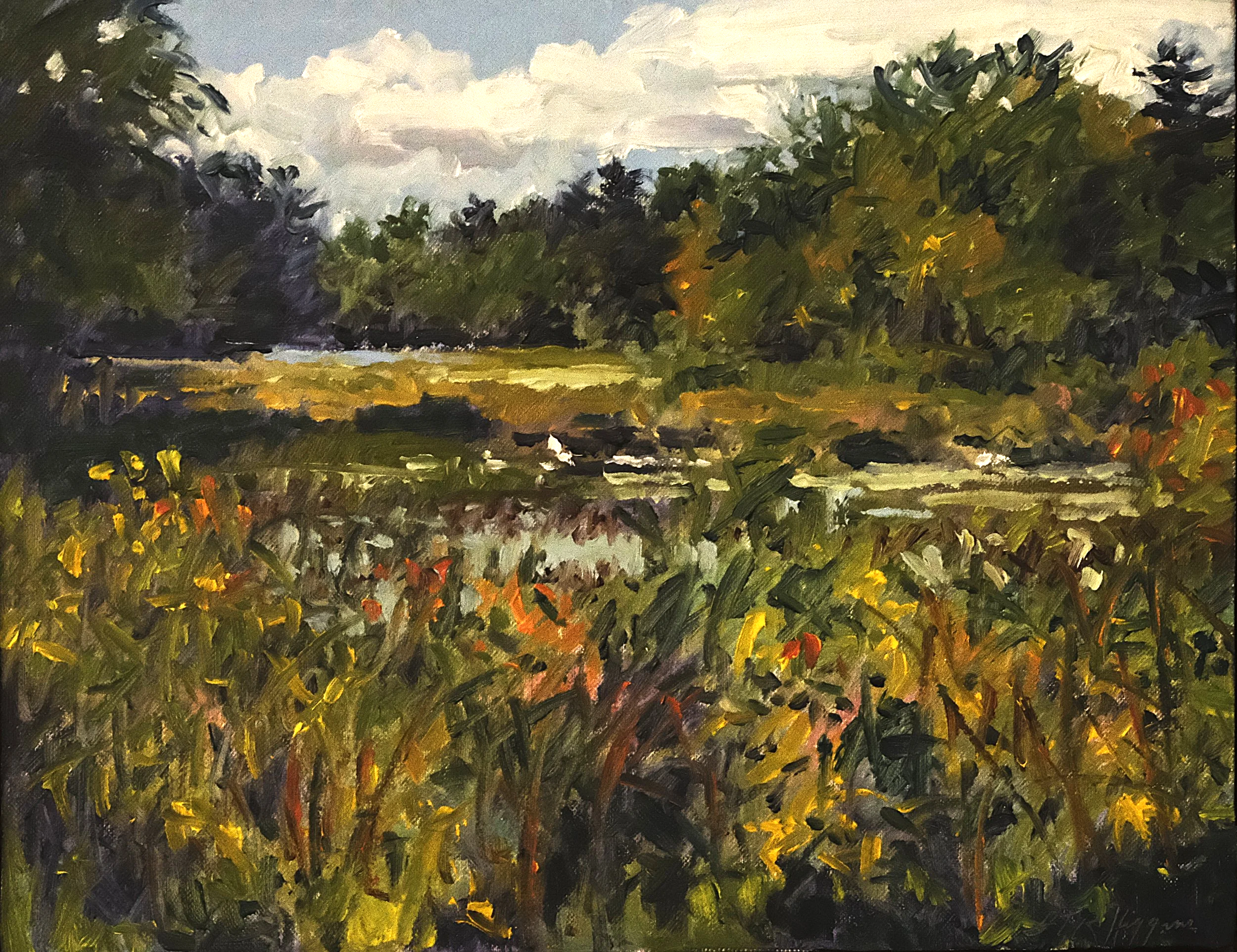 Higgins continues to be an outdoor enthusiast, capturing dynamic, animated landscapes full of painterly energy.