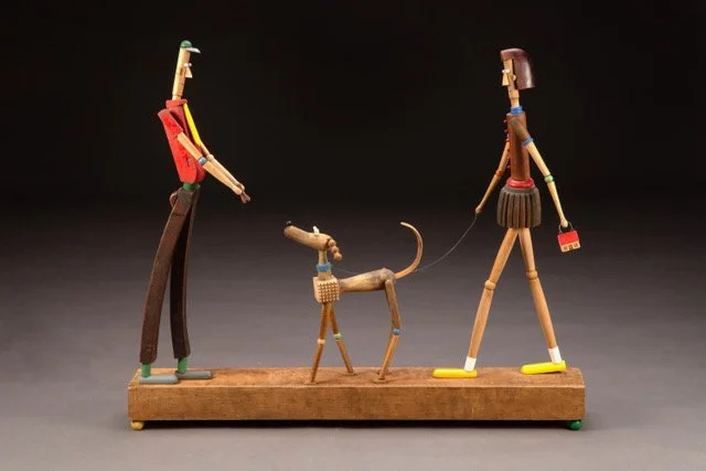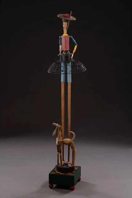 The theme of “fashion” was a prompt for most of these creations. In some instances these are figures wearing “assembled ensembles” fabricated from materials other than fabric. Some of the objects I collected specifically for this show. The more than 60 containers in my studio are filled with tools, toys, furniture parts, and various things of interest that I have collected for over 30 years.