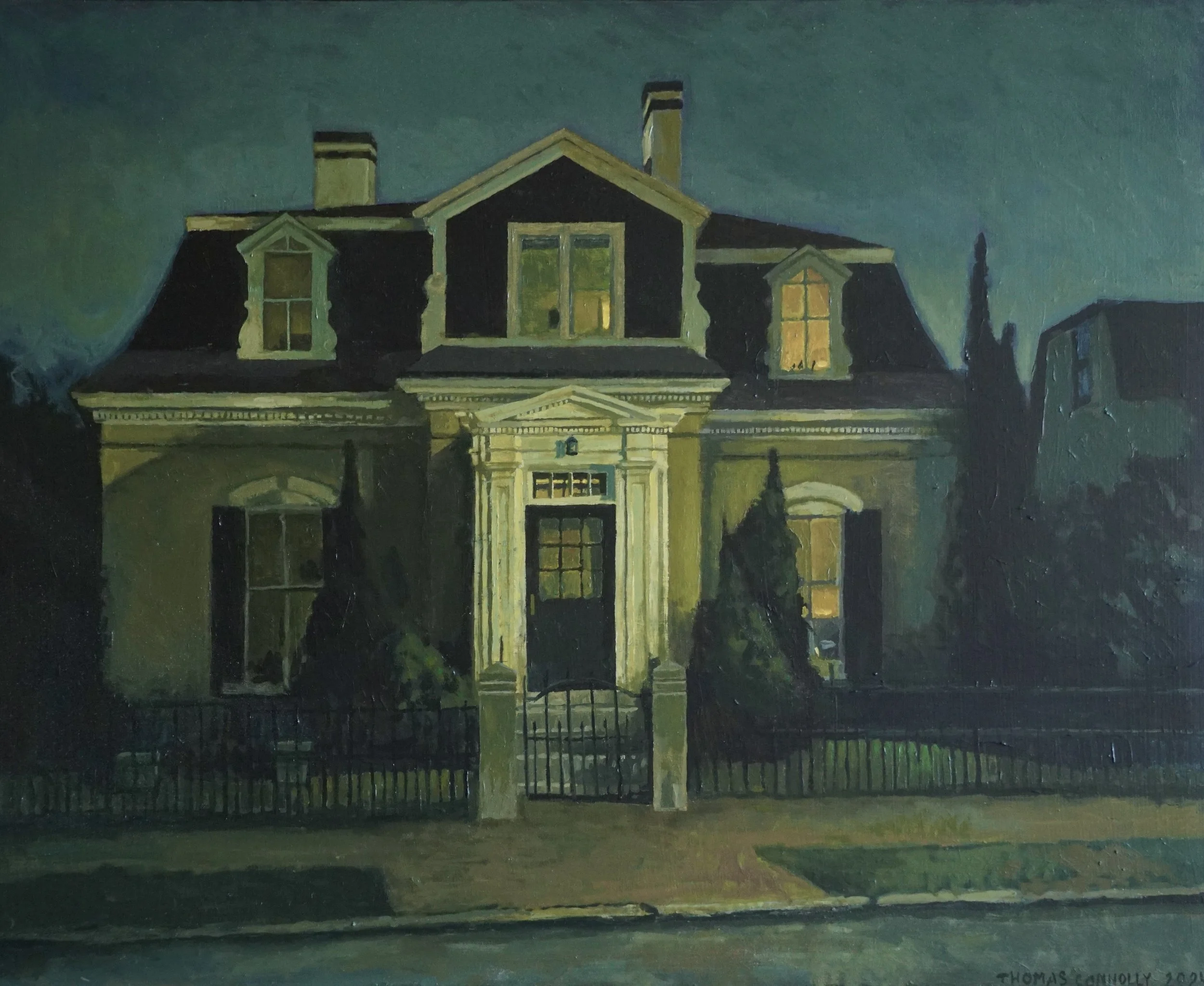 Thomas Connolly is a realist painter who is known for his architectural paintings of Portland, New York City and beyond. Connolly participated in the Maine College of Art Baie Ste. Marie residency program in New Edinburgh, Nova Scotia. He was juried in to the 2011 Portland Museum of Art Biennial Exhibition, and the 2010 Center for Maine Contemporary Art Biennial Exhibition. He is the recipient of a Pollock-Krasner Foundation Grant and the Sheldon Bergh Award. Connolly’s work expresses a strong sense of mood through subtle use of color adding a richness to the subjects he chooses to paint.